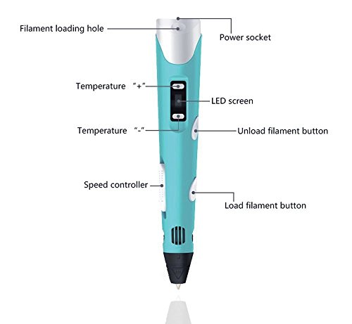 Lauva 3D Stift, 3D Druck Stifte für Freihand Zeichnungen 3D Printing Pen mit EU Adaptor gratis PLA Filament (Blau1)